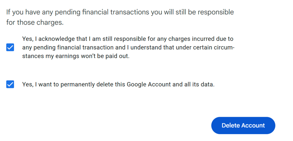 Now that you’ve packed your bags, it’s time to leave. Make sure that all the data you want is downloaded and you understand the Google services you use will no longer be accessible (including YouTube and your Gmail email). Go to https://myaccount.google.com/deleteaccount
